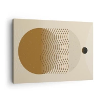 Lærredstryk - Billede på lærred - Geometrisk abstraktion med cirkler og bølgede linjer i varme farver. - 70x50cm - Om geometriske figurers oprindelse - Moderne vægdekoration til stue og soveværelse ARTTOR