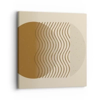 Billede på glas - Geometrisk komposition med bølger og cirkler i beige farver - 70x50cm - Om geometriske figurers oprindelse - Moderne vægdekoration til stue og soveværelse ARTTOR