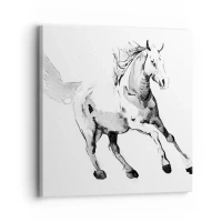 Lærredstryk - Billede på lærred - Skitse af en galoperende hest i sorte og hvide nuancer - 70x50cm - Utæmmet sjæl - Moderne vægdekoration til stue og soveværelse ARTTOR