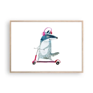Plakat i ramme af lyst egetræ - Grævlingens glæder - 100x70 cm