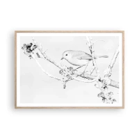 Plakat i ramme af lyst egetræ - Vintermorgen - 100x70 cm