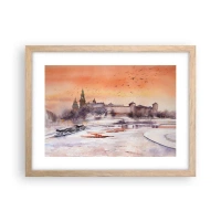 Plakat i ramme af lyst egetræ - Kongelig solnedgang - 50x40 cm