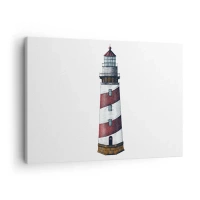 Lærredstryk - Billede på lærred - Et tegneseriebillede af et fyrtårn med røde og hvide striber på en minimalistisk baggrund. - 70x50cm - Altid på vagt - Moderne vægdekoration til stue og soveværelse ARTTOR