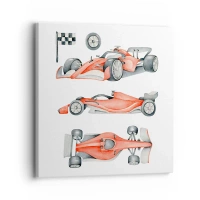 Lærredstryk - Billede på lærred - En rød racerbil med et ternet flag - 70x50cm - At indhente en drøm - Moderne vægdekoration til stue og soveværelse ARTTOR