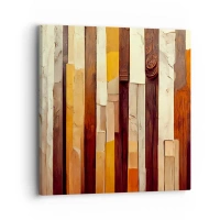 Plakat i sort ramme - En abstrakt komposition af træpaneler i varme farver. - 50x70cm - Hymne af skovens træer - Moderne vægdekoration til stue og soveværelse ARTTOR