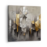 Lærredstryk - Billede på lærred - Geometrisk abstraktion i nuancer af guld og grå - 70x50cm - Komposition lavet af is og lys - Moderne vægdekoration til stue og soveværelse ARTTOR