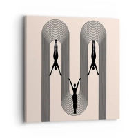 Billede på glas - Sorte silhuetter af figurer ophængt i rytmiske buer - 70x50cm - På hovedet nedad - Moderne vægdekoration til stue og soveværelse ARTTOR