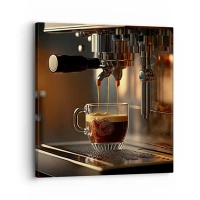 Lærredstryk - Billede på lærred - Kaffemaskine med en kop aromatisk espresso - 70x50cm - En sensuel blanding - Moderne vægdekoration til stue og soveværelse ARTTOR