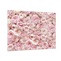 Billede på glas - Pastellroser i et tæt blomsterarrangement - 70x50cm - Overstrøet med roser - Moderne vægdekoration til stue og soveværelse ARTTOR