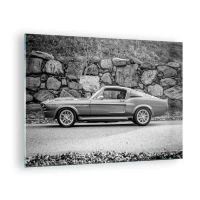 Billede på glas - En klassisk bil mod en stenmur - 70x50cm - En legende fra 1960'erne. - Moderne vægdekoration til stue og soveværelse ARTTOR
