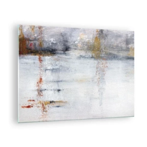 Billede på glas - Et abstrakt maleri med en diskret kombination af grå, hvid og guld. - 70x50cm - Bag lufttæppet - Moderne vægdekoration til stue og soveværelse ARTTOR